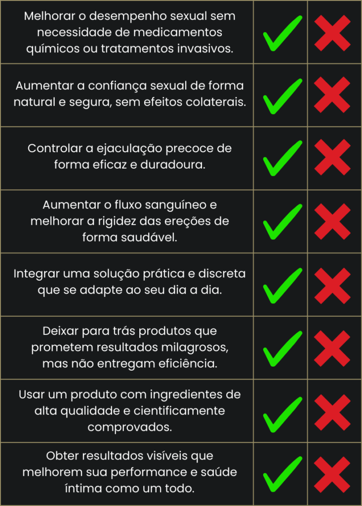 Desfrute de ereções firmes e duradouras. Supere a dificuldade de ereção, proporcionando confiança e prazer intenso em cada encontro.
